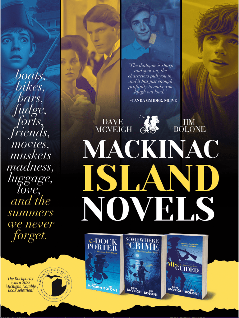 My previous work, the Mackinac Island Novels, written with my co-author, Dave McVeigh, can be found on thedockporter.com.